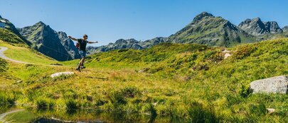 Thematic water hiking trails like the Aquaweg, a accessible from the Golmerbahn Latschau middle station, guiding hikers through diverse water landscapes including streams, waterfalls, and panoramic alpine paths over approximately 6 hours of walking time.